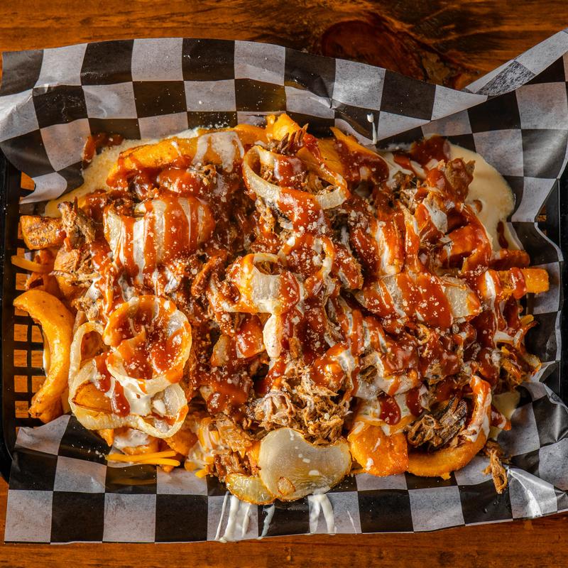 Slow smoked brisket, caramelized onions, queso and our BBQ on top of crisp tortillas