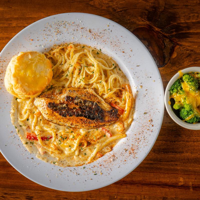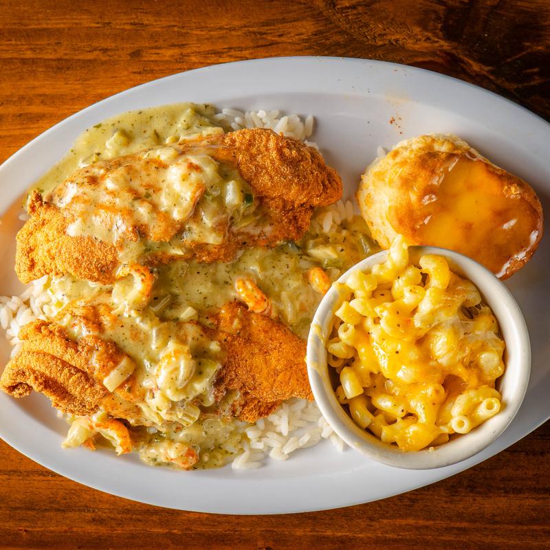 MS farm raised catfish, grilled how you like it, with cajun creole cream sauce and shrimp. Served with asparagus